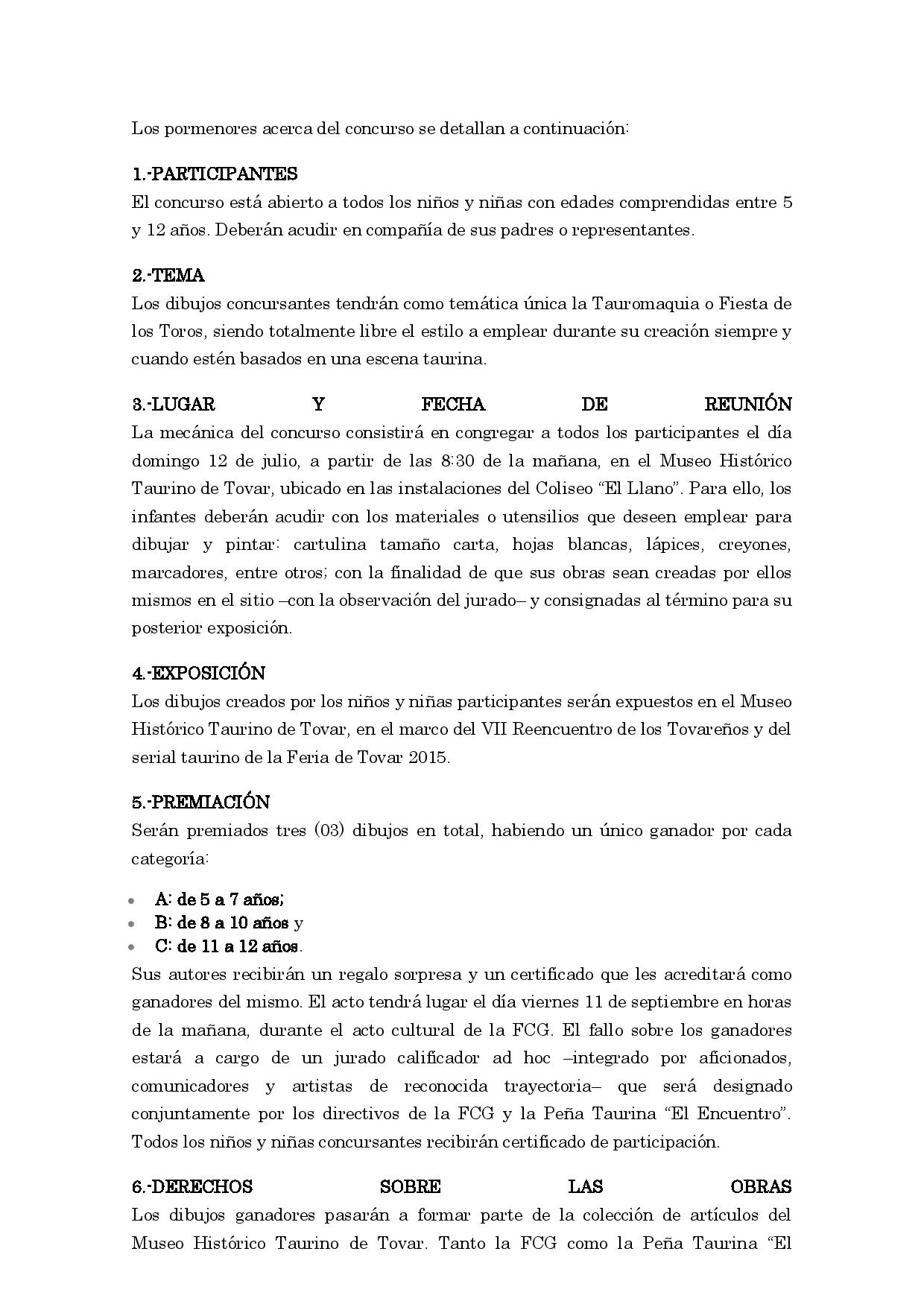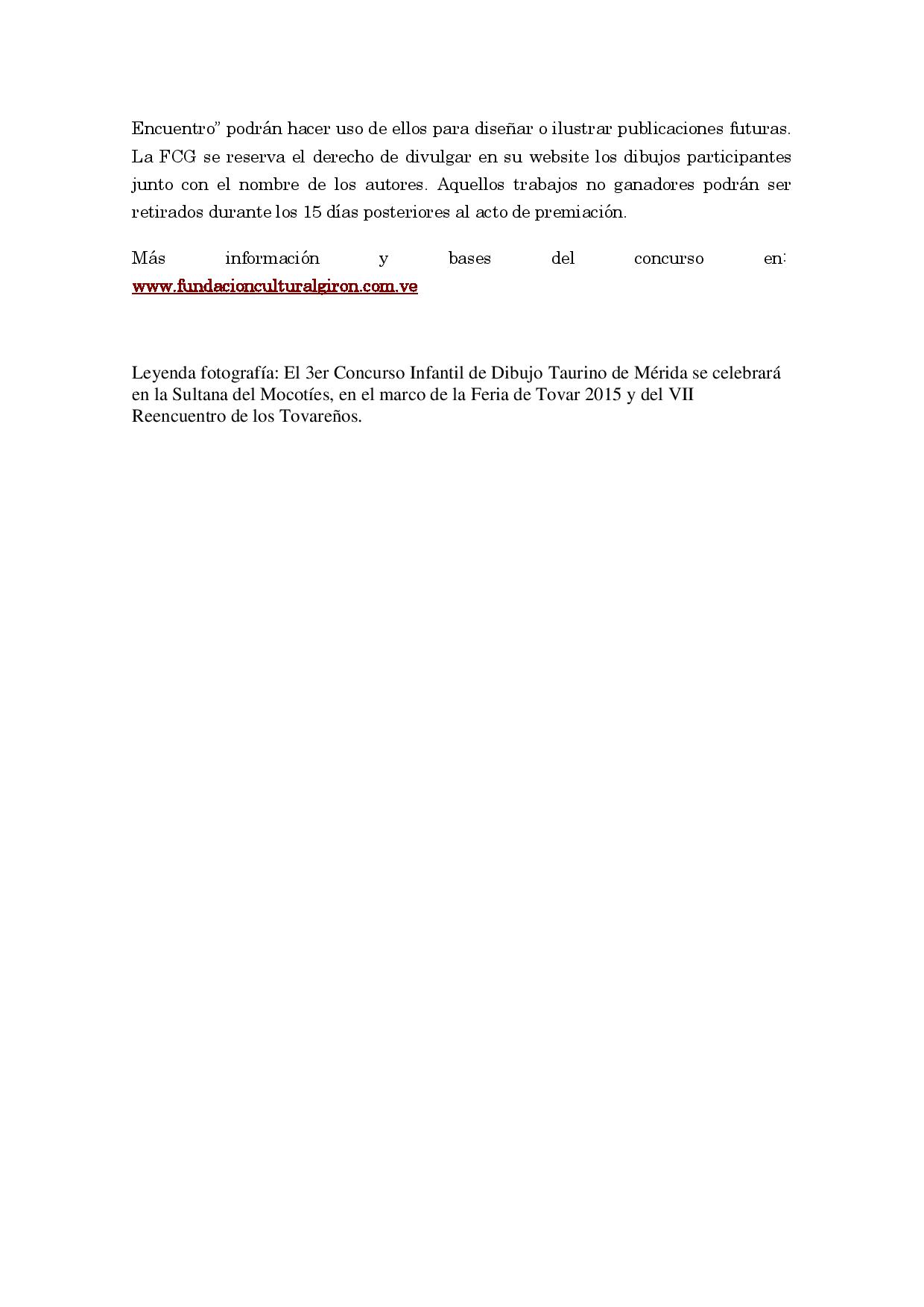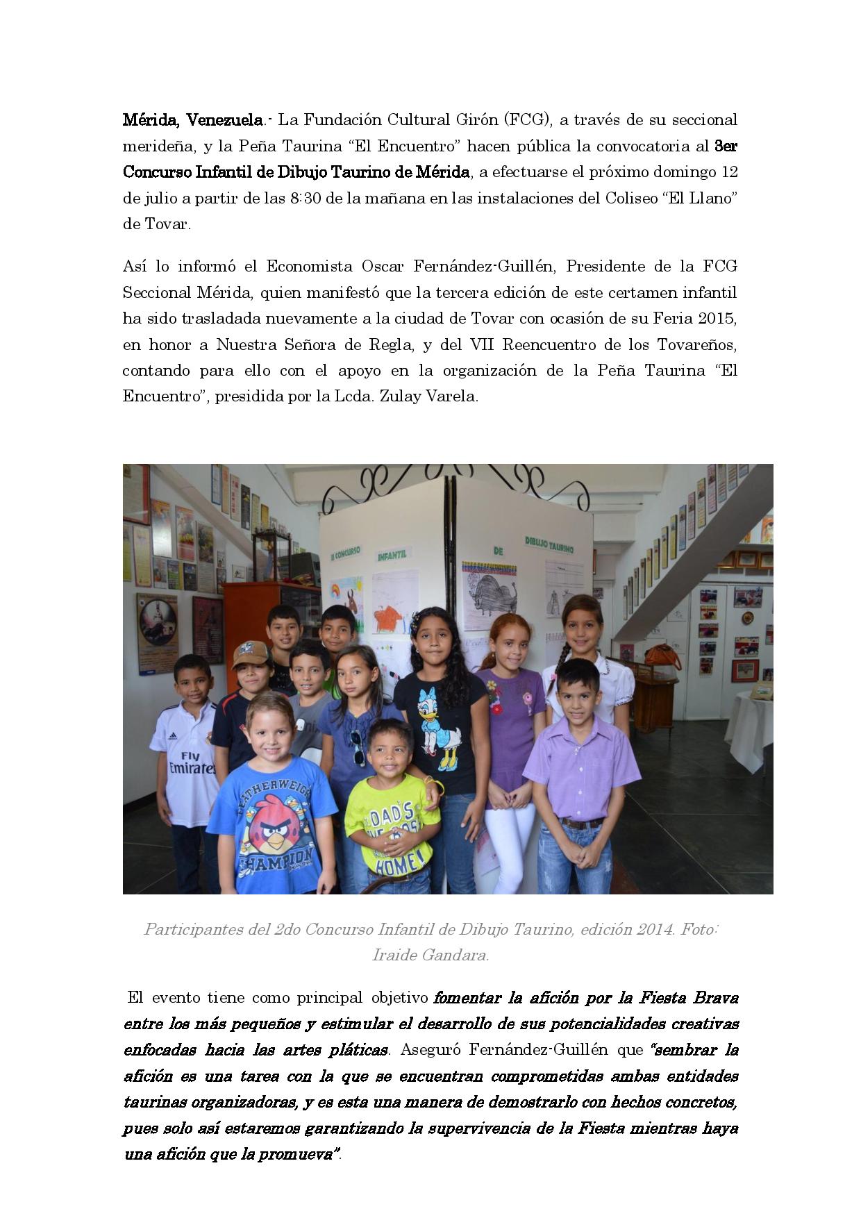 Fundación Cultural Girón y Peña Taurina `El Encuentro´ de Tovar convocan 3er Concurso Infantil de Dibujo Taurino de Mérida
