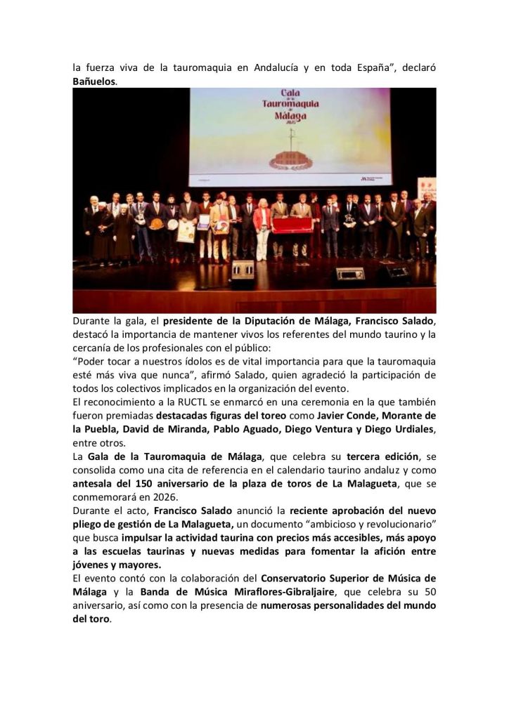 Gala de la tauromaquia de Málaga 2025 – Para + info haz clic👆 🇪🇸