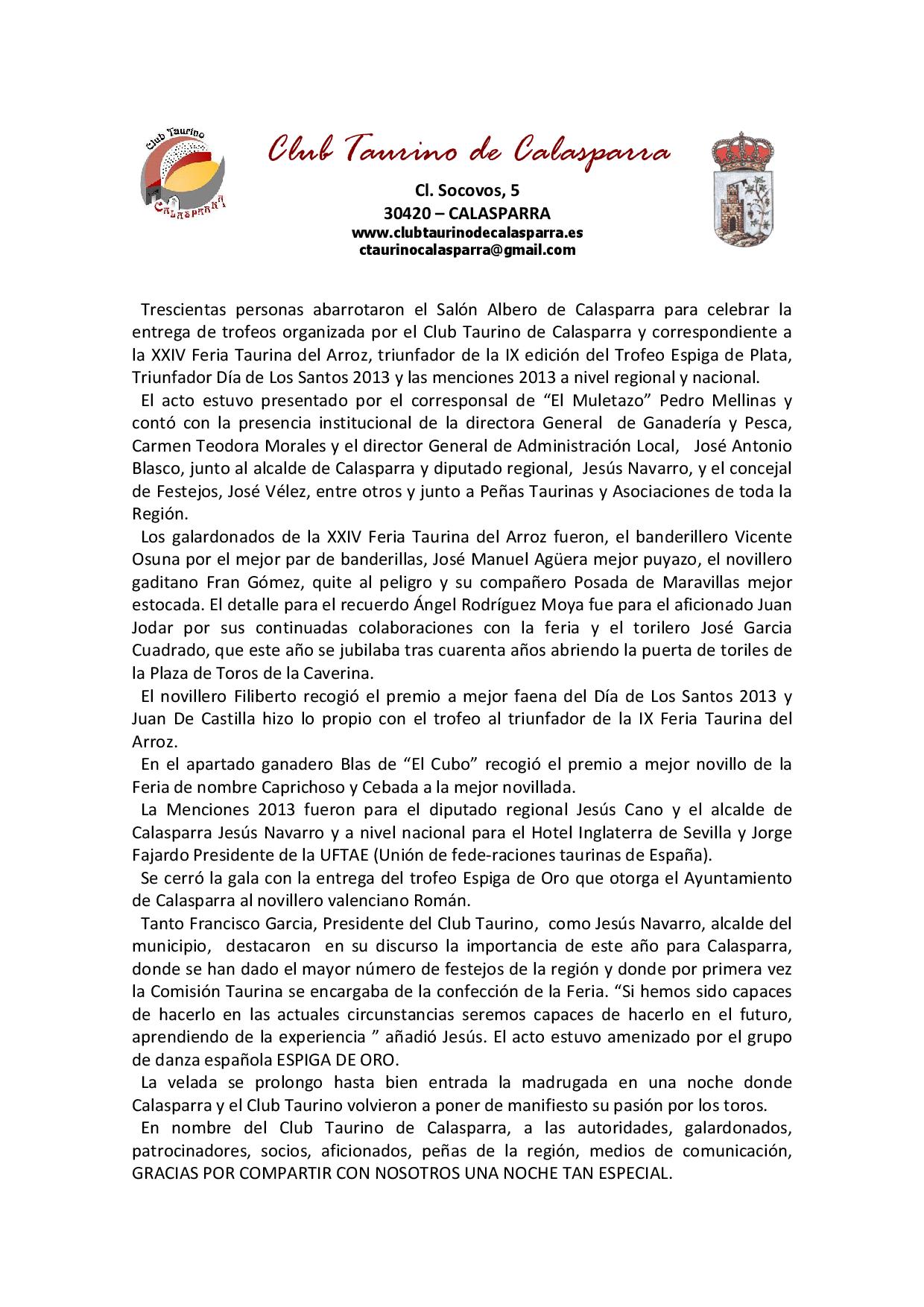 Gala Entrega de premios Temporada 2013