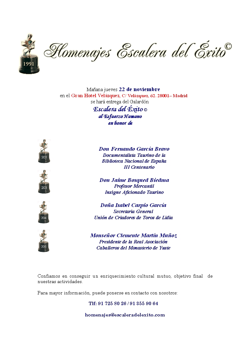 Galardón Escalera del Éxito © al Esfuerzo Humano celebrará mañana 22 de noviembre de 2012