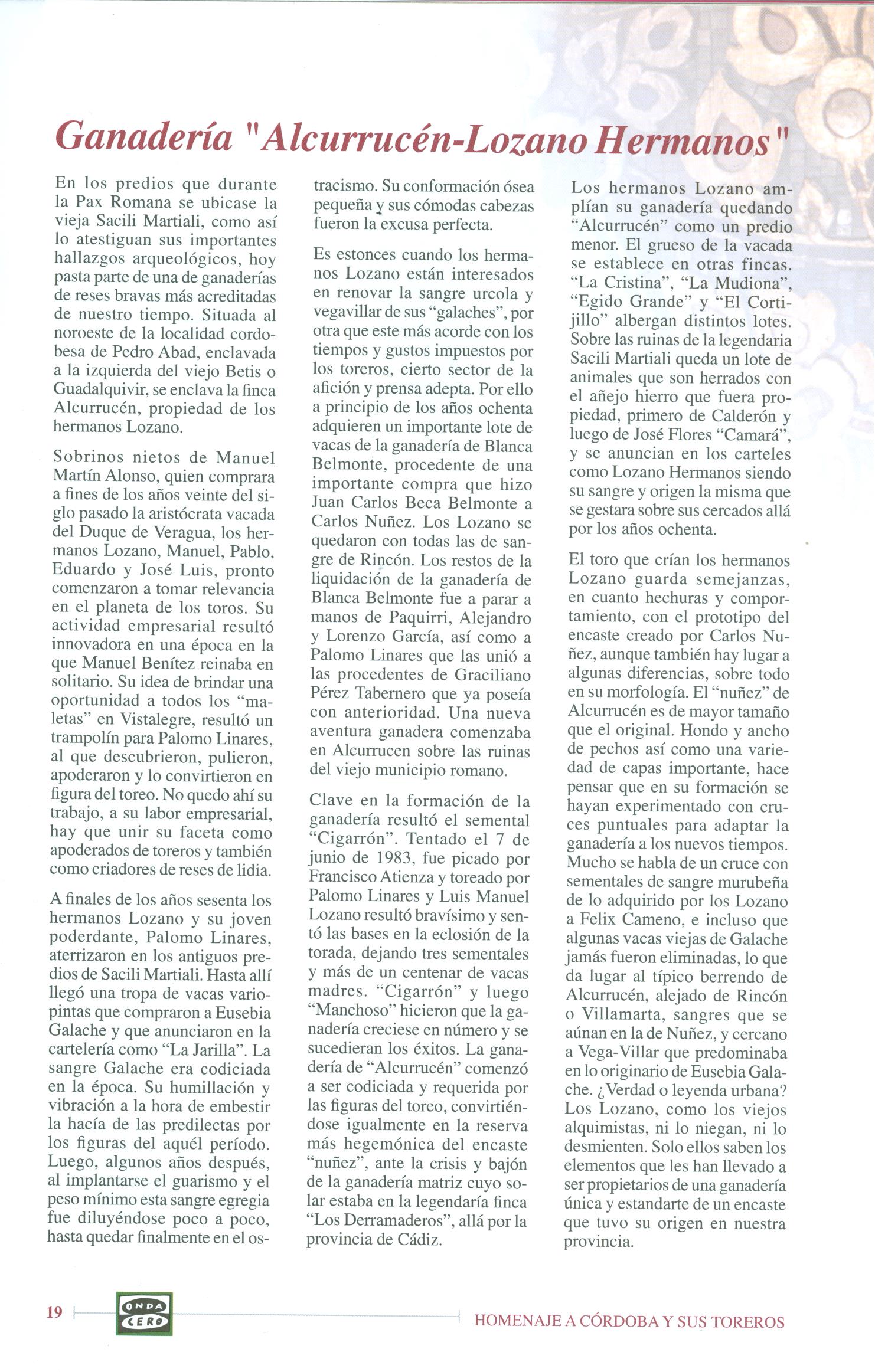 Ganadería `Alcurrucén – Lozano Hermanos´