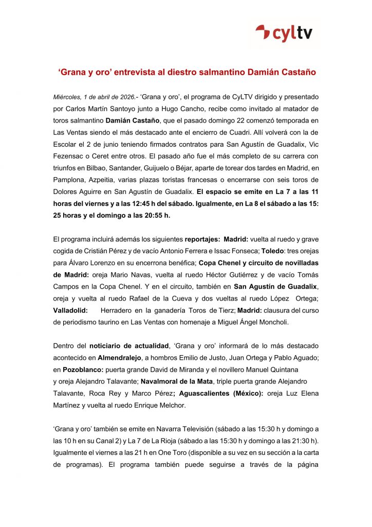 Grana y oro. Entrevista al diestro salmantino Damián Castaño – Para + info haz clic👆 🇪🇸