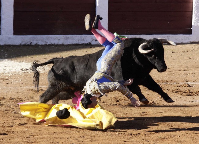 Con la tarde hecha, Ruano se fue a portagayola para recibir al Sepúlveda que cerraba la corrida. Tras la comprometida suerte, el diestro recetó una larga cambiada de la que salió trompicado y fue volteado violentamente, recibiendo una cornada en el muslo derecho y teniendo que abandonar de manos de Miguel Abellán el ruedo de Guijuelo.