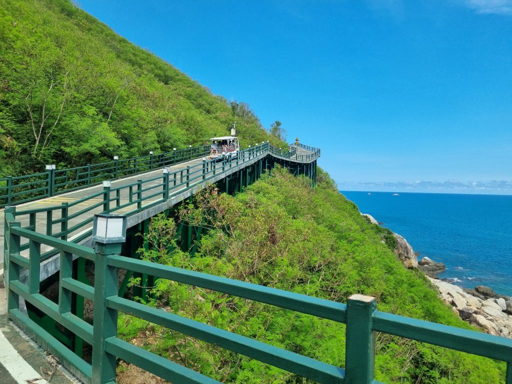 Pero otro lugar imprescindibles antes de finalizar la visita, es la llamada Isla del Oeste que incluye una Reserva Natural de Arrecifes de Coral, un verdadero paraíso submarino para los amantes del buceo y conserva el ambiente de pueblo marinero que ha sido siempre. West Island propone un nuevo turismo sostenible y solidarios, entre otras medidas, lanzó la campaña «isla sin plástico» en 2019 y la campaña «isla cero residuos» en 2020, estableciendo un objetivo de cero residuos a 10 años. Hay playas magníficas y los chinos adoran las playas, pero raramente se bañan en ellas, les gusta pasear completamente vestidos por las orillas, sin mojarse los pies. La isla es el lugar favorito de las instagramers chinas (que se cuentan por millones) que acuden allí con sus mejores galas y trajes largos para compartir sus fotos con miles de seguidores.