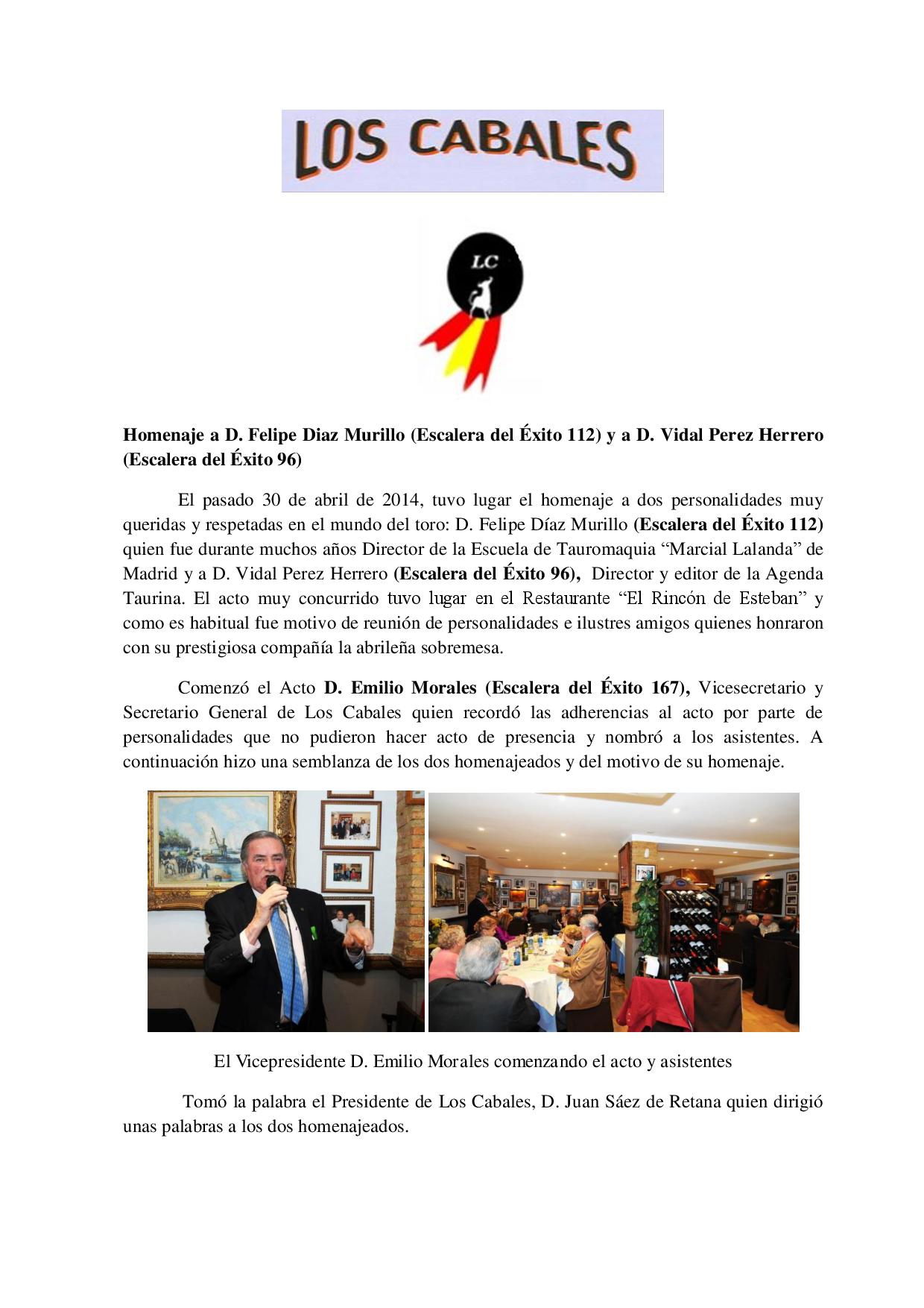 Homenaje a D. Felipe Diaz Murillo (Escalera del Éxito 112) y a D. Vidal Perez Herrero (Escalera del Éxito 96) en Los Cabales