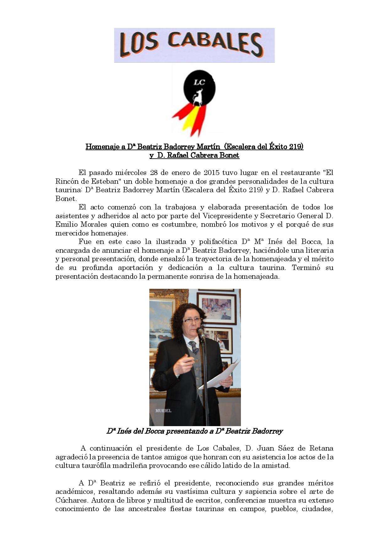 Homenaje a Dª Beatriz Badorrey Martín (Escalera del Éxito 219) y D. Rafael Cabrera Bonet