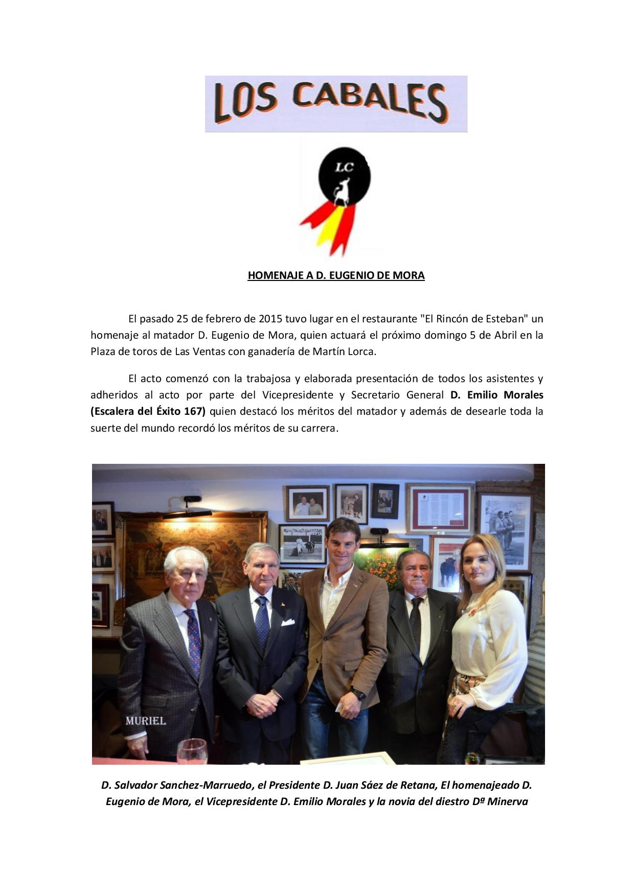 Homenaje a Eugenio de Mora en Peña Taurina `Los Cabales´