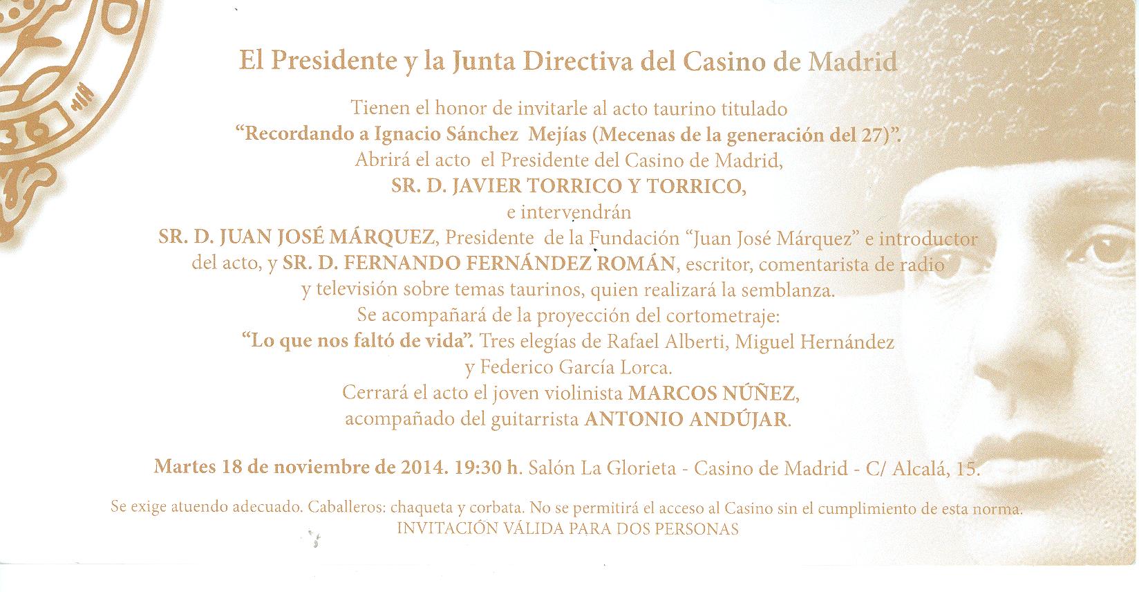 Homenaje a Ignacio Sánchez Mejías en el Casino de Madrid