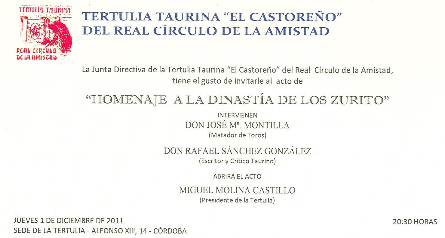 Homenaje a la Dinastía de los Zurito en la Tertulia Taurina «El Castoreño»