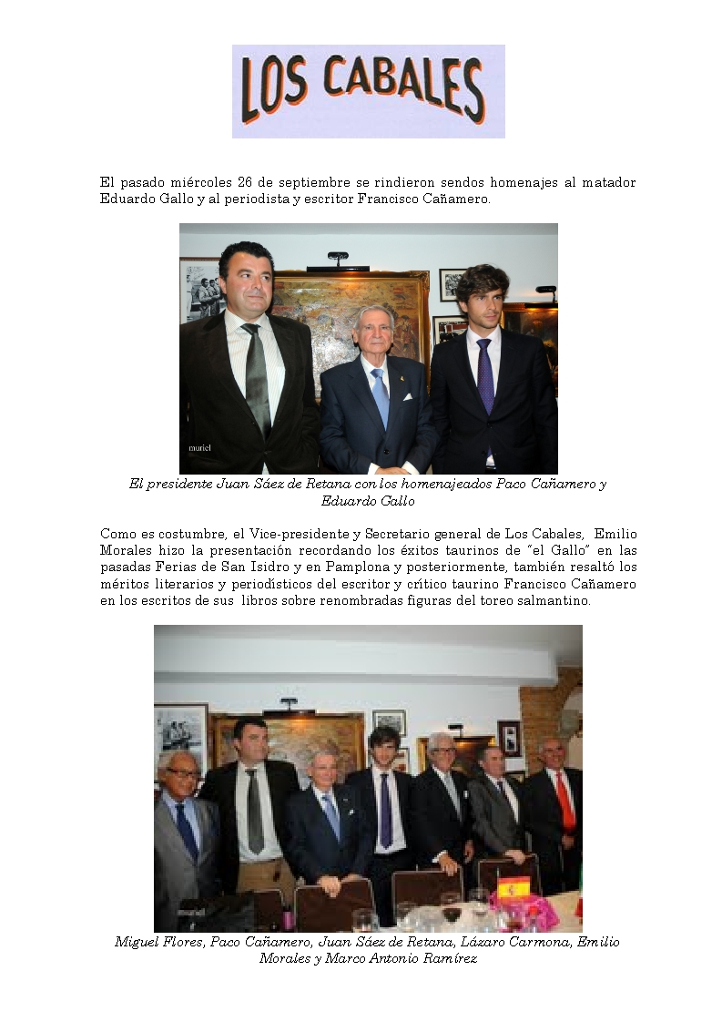 Homenaje al matador Eduardo Gallo y Francisco Cañamero