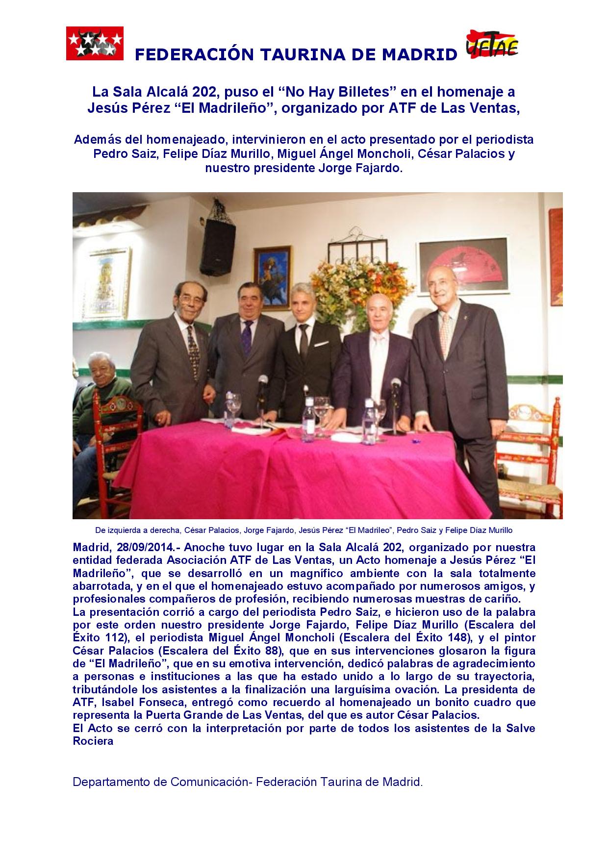 Homenaje celebrado honor de Jesús Pérez El Madrileño