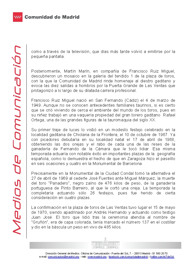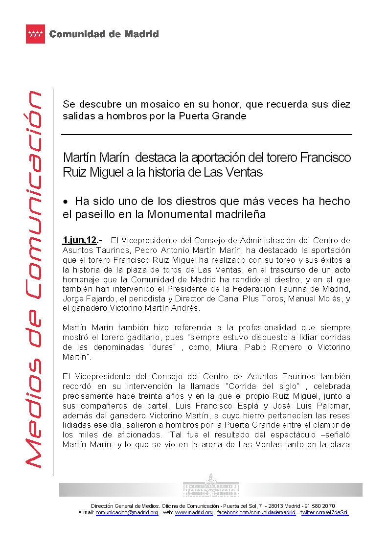 Homenaje de la Comunidad de Madrid a Francisco Ruiz Miguel. Escalera del Éxito 169