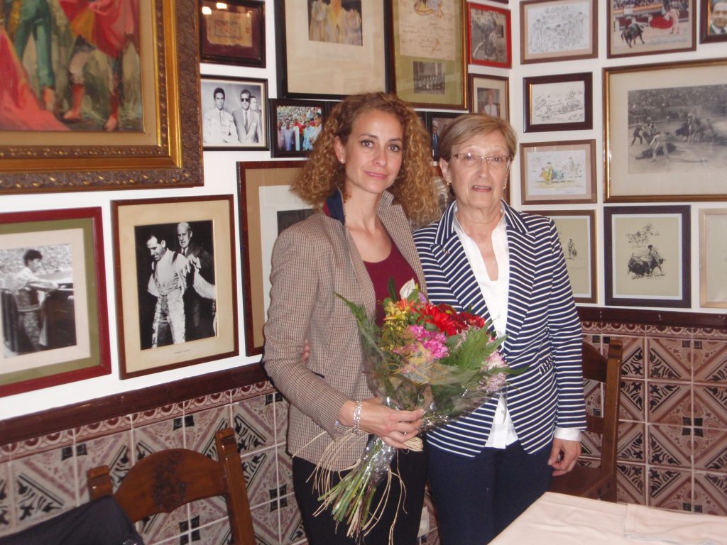 Concluidas las intervenciones, el presidente de la Tertulia impuso a Fernando Robleño el “Madroño de Albero” emblema y distintivo de la Tertulia de Amigos del Conde de Colombí. Seguidamente, doña Alicia Hernández (Un Romántico del Toreo Rafael Sánchez “Pipo”), entregó a la esposa de Fernando un ramo de flores, detalle de la Tertulia.