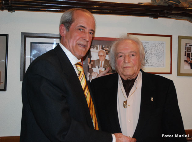 A continuación, D. José Mª Moreno Bermejo impuso al homenajeado el emblema de la Tertulia, el “Madroño de Albero”.