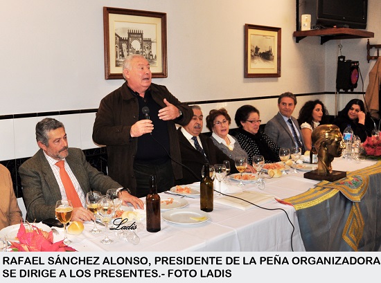 «Sigo comprometido con la defensa y divulgación de la Fiesta entre los más jóvenes», con estas palabras Antonio Sanz Llergo cerró una intervención que dirigió, emocionado, a los cerca de cien comensales que le arroparon en el almuerzo homenaje que le organizó la Peña Cultural Taurina Solano González, de Montilla con motivo de haber dejado la presidencia de la Federación Provincial Taurina, tras once años al frente. Anteriormente, Rafael Sánchez Alonso, presidente de la peña organizadora, tuvo palabras muy cariñosas hacia Sanz, al que le une una amistad sincera desde hace muchos años y del que destacó sus conocimientos de la Fiesta y su tesón en la defensa de la misma. Entre los asistentes se encontraba el nuevo presidente de la Federación, Celso Ortiz, que igualmente dedicó unas palabras elogiosas a Sanz Llergo, tomándolo como ejemplo del buen hacer y exponiendo a todos algunos de sus proyectos más inmediatos en esta nueva responsabilidad que toma con mucha ilusión. También dedicó unas palabras al homenajeado el matador de toros Rafael González «Chiquilín» que dijo que, como director de la Escuela Taurina, sabía del esfuerzo de Sanz porque la Fiesta llegue a los más jóvenes y en el trabajo realizado por este hombre al que denominó aficionado ejemplar.
