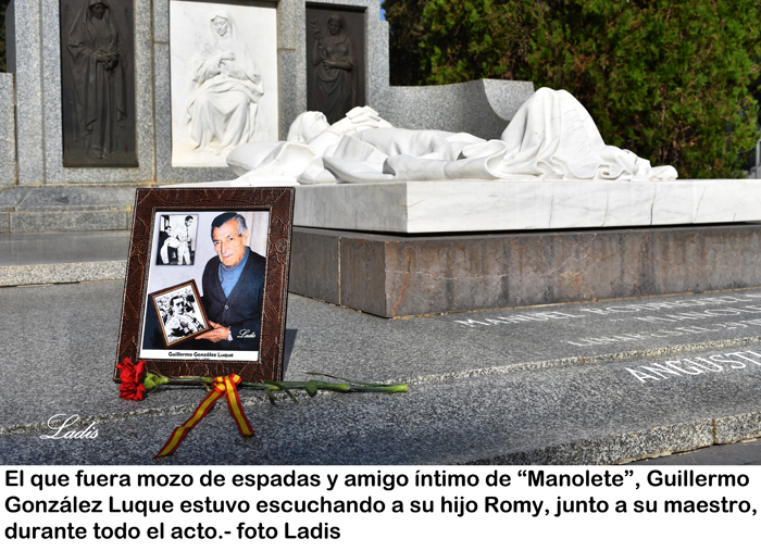 Pues bien, Romy González supo ensamblar la figura de «Manolete» y la de su padre, unidos en la historia para siempre, en una disertación muy emotiva y documentada cuajada de anécdotas – muchas de ellas inéditas- sobre la relación entre ambos amigos. Mientras el hijo hablaba la escena la presidía un portarretratos colocado a los pies del IV Califa con una imagen de «Manolete» y Guillermo juntos.
