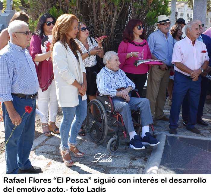 Solo resta añadir que estuvo presente, a pesar de sus 90 años y consabidos achaques, el veterano torero cordobés Rafael Flores «El Pesca» y que la representación del gobierno municipal la ostentaron la Teniente de Alcalde Marian Aguilera y el concejal Antonio Álvarez, que depositaron un ramo de flores en nombre del Ayuntamiento.
