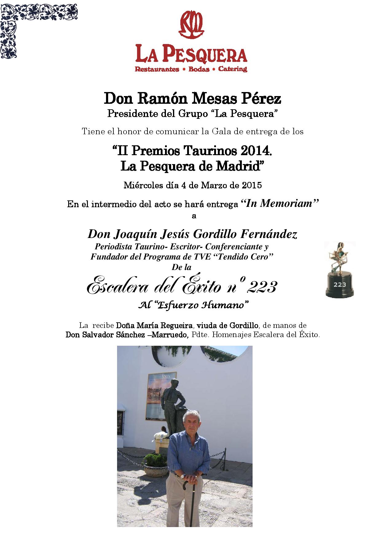 Hoy 4 de marzo se hará entrega “In Memoriam” a Don Joaquín Jesús Gordillo Fernández de la Escalera del Éxito nº 223