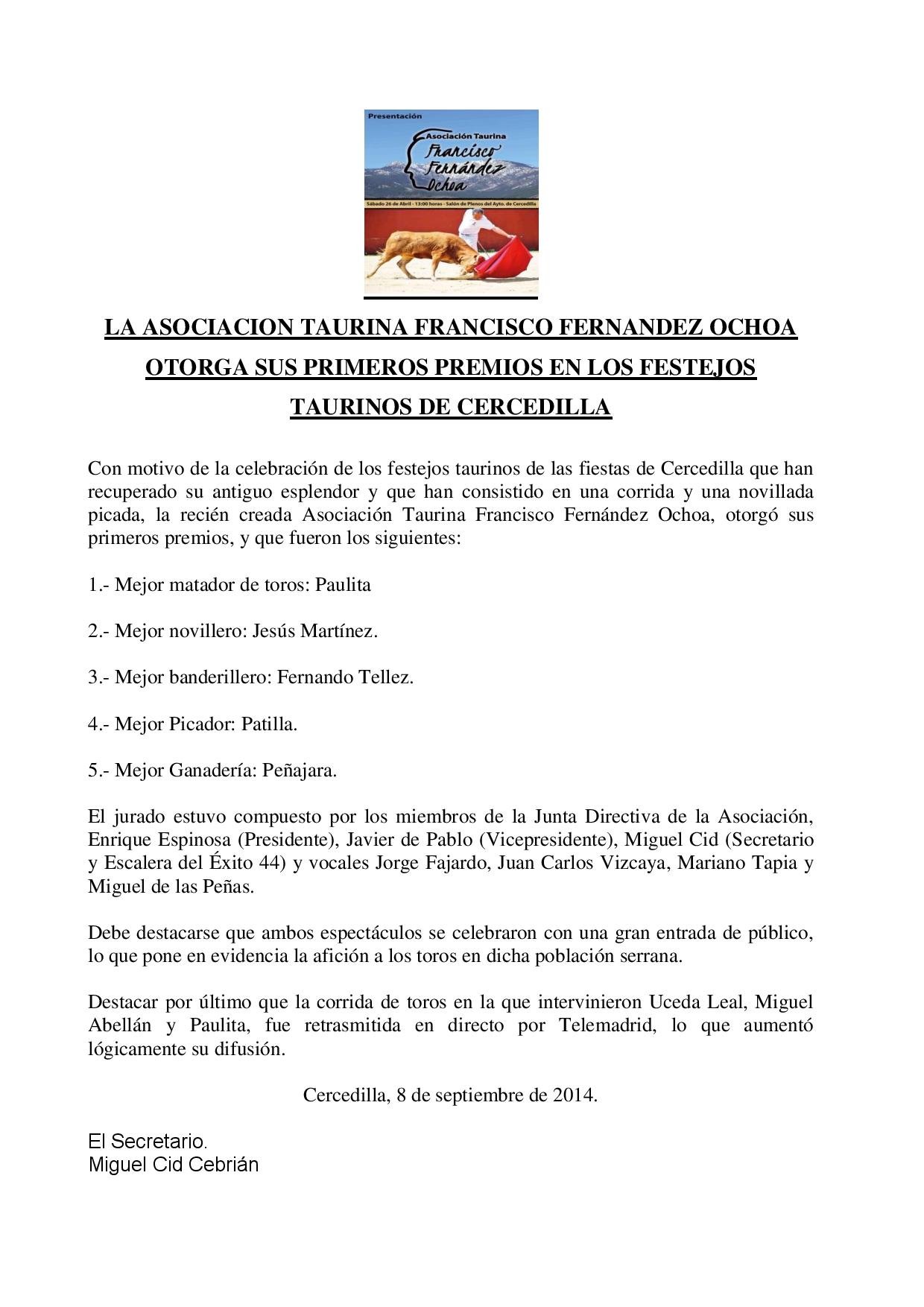 I Edición Trofeo Asociación Taurina Francisco Fernández Ochoa de Cercedilla