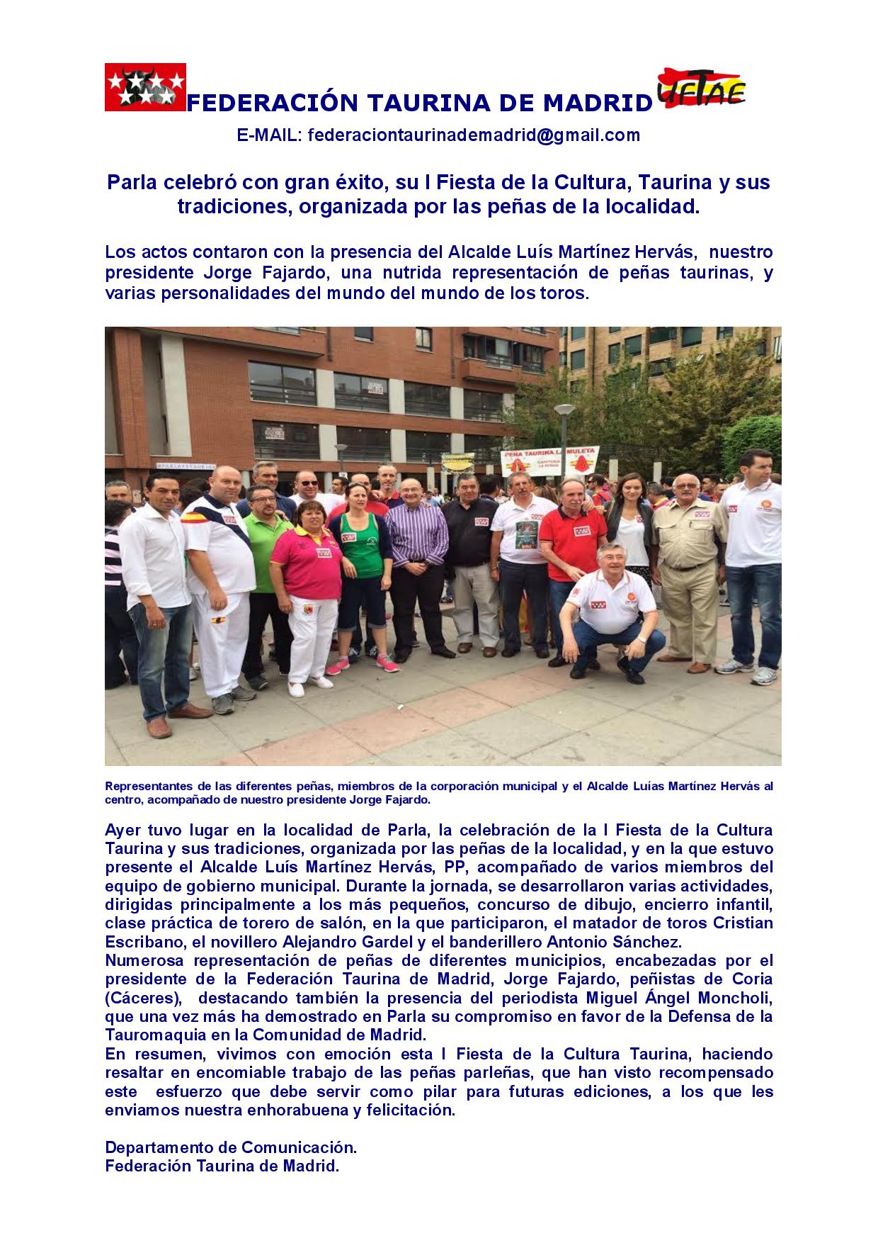 I Fiesta de la Cultura Taurina y sus tradiciones celebrada en la madrileña localidad de Parla