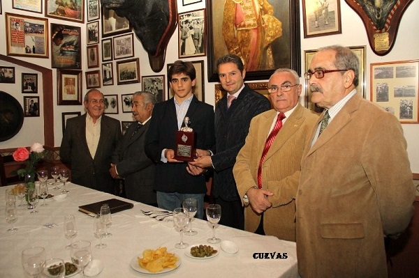 El joven novillero cordobés ha recogido, en la tertulia taurina «Manolete», el premio «Guerrita» que le acredita como triunfador de la becerrada homenaje a la mujer cordobesa. El chaval, que es alumno de la escuela taurina de Córdoba, recibió el galardón de manos del director de la misma Rafael González «Chiquilín». El acto, muy sencillo y agradable, se desarrolló en la sede social de la peña y contó con la presencia del presidente de la Federación Provincial Taurina Antonio Sanz Llergo. La tertulia Manolete tiene instituidos tres premios para distinguir a los protagonistas de las corridas de feria: el trofeo Mhitra, para matadores de toros, a la labor mas completa, el trofeo Antonio Cañero, al triunfador de los rejoneadores y el trofeo «Guerrita» al chaval que mas destaque en la becerrada de la mujer cordobesa. Rafael Contreras Zamora, miembro de la tertulia, glosó la labor del chico y su concepto serio de la lidia. Ostos por su parte agradeció el galardón y dijo que significa mucho para el por tratarse del primer premio que consigue.