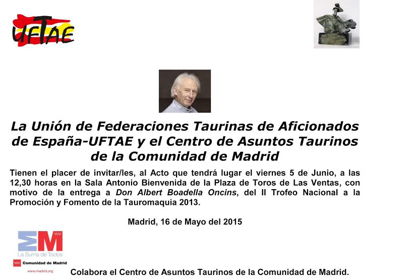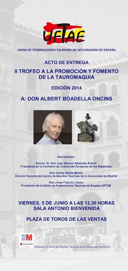 II Trofeo Nacional a la Promoción y Fomento de la Tauromaquia a Don Albert Boadella Oncins