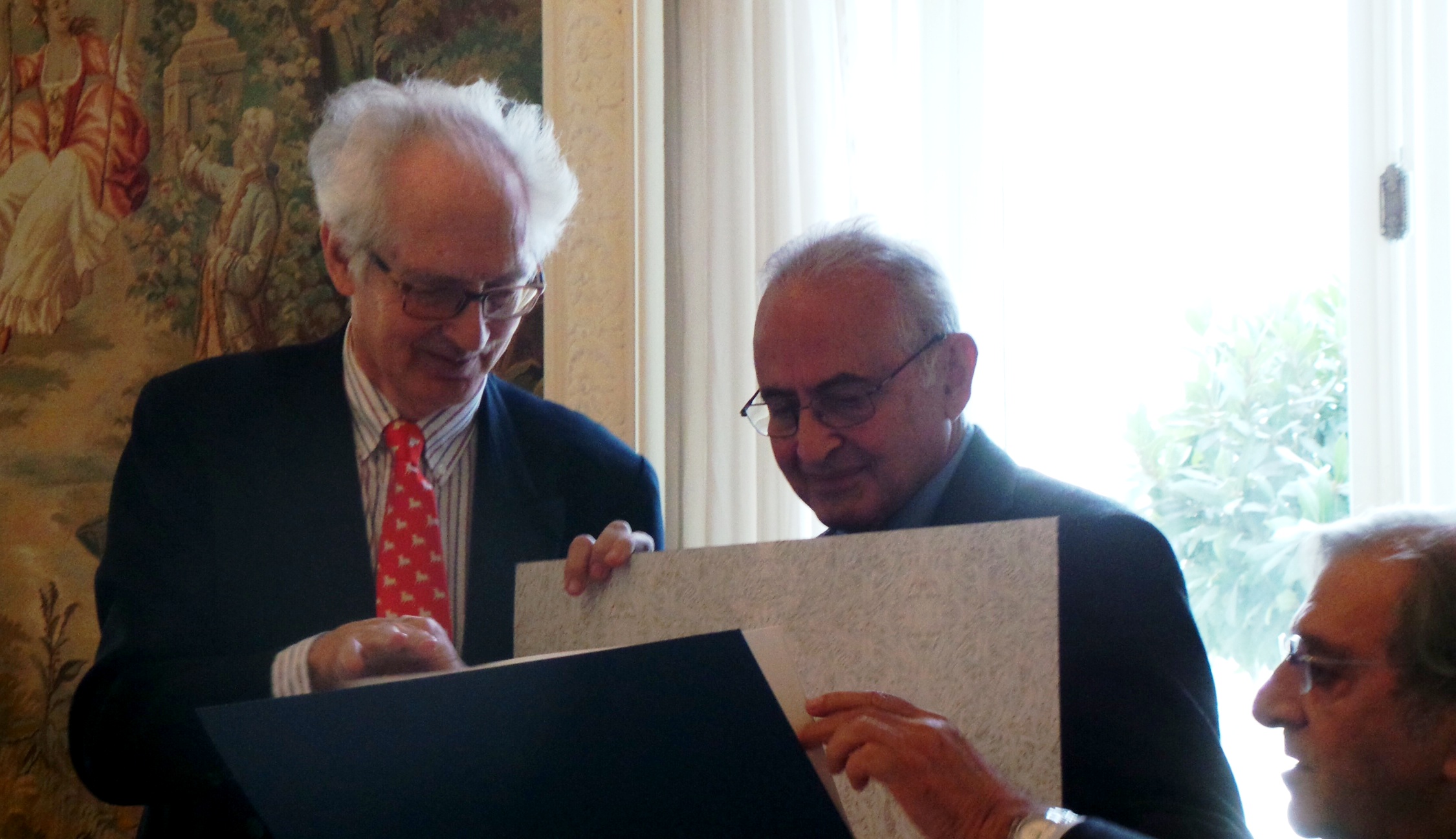 D. Andrés Amorós, vicepresidente de FACULTA, entrega los grabados a D. David Shohet