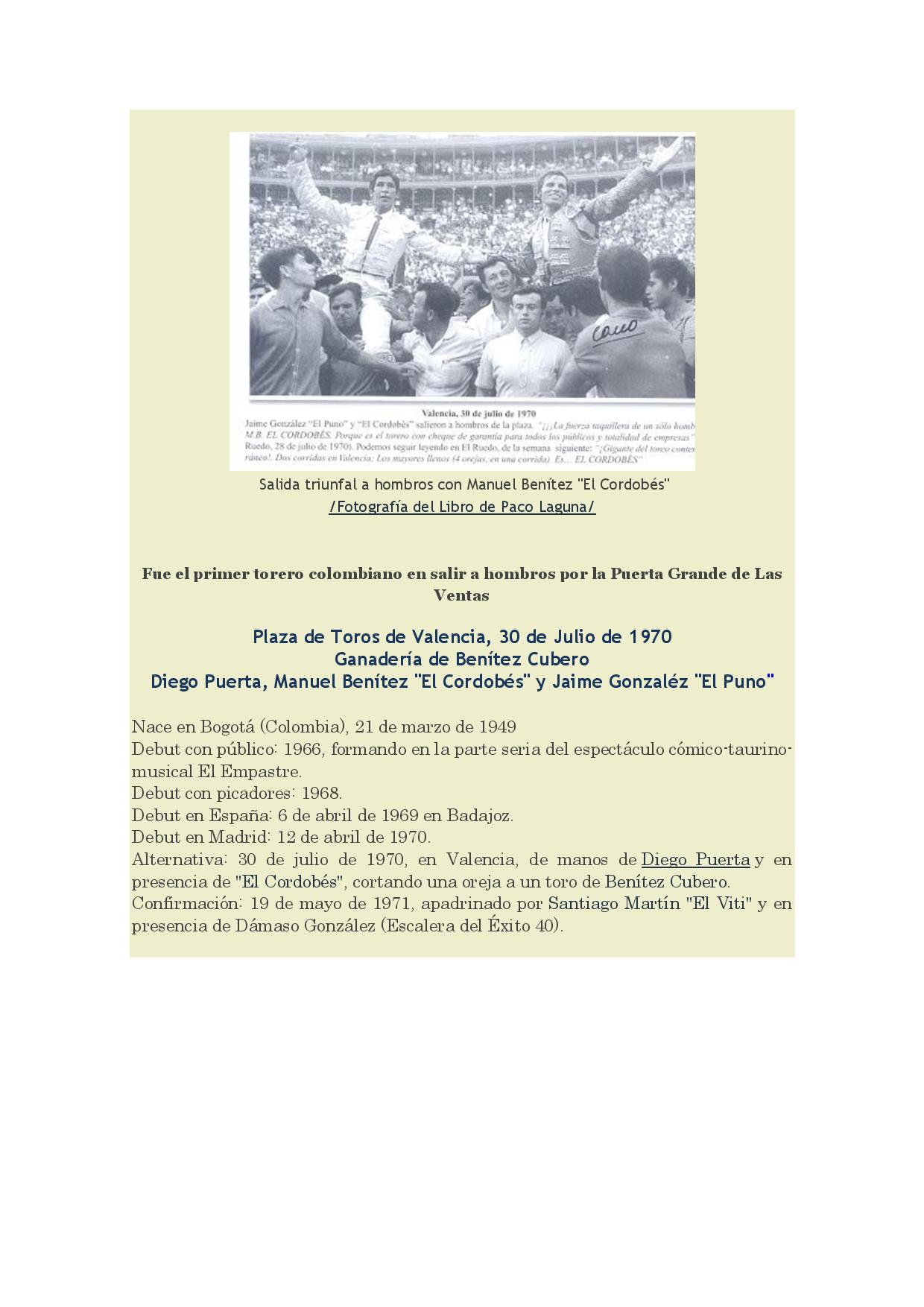Jaime González El Puno Escalera del Éxito 90, aniversario de su alternativa de en Valencia