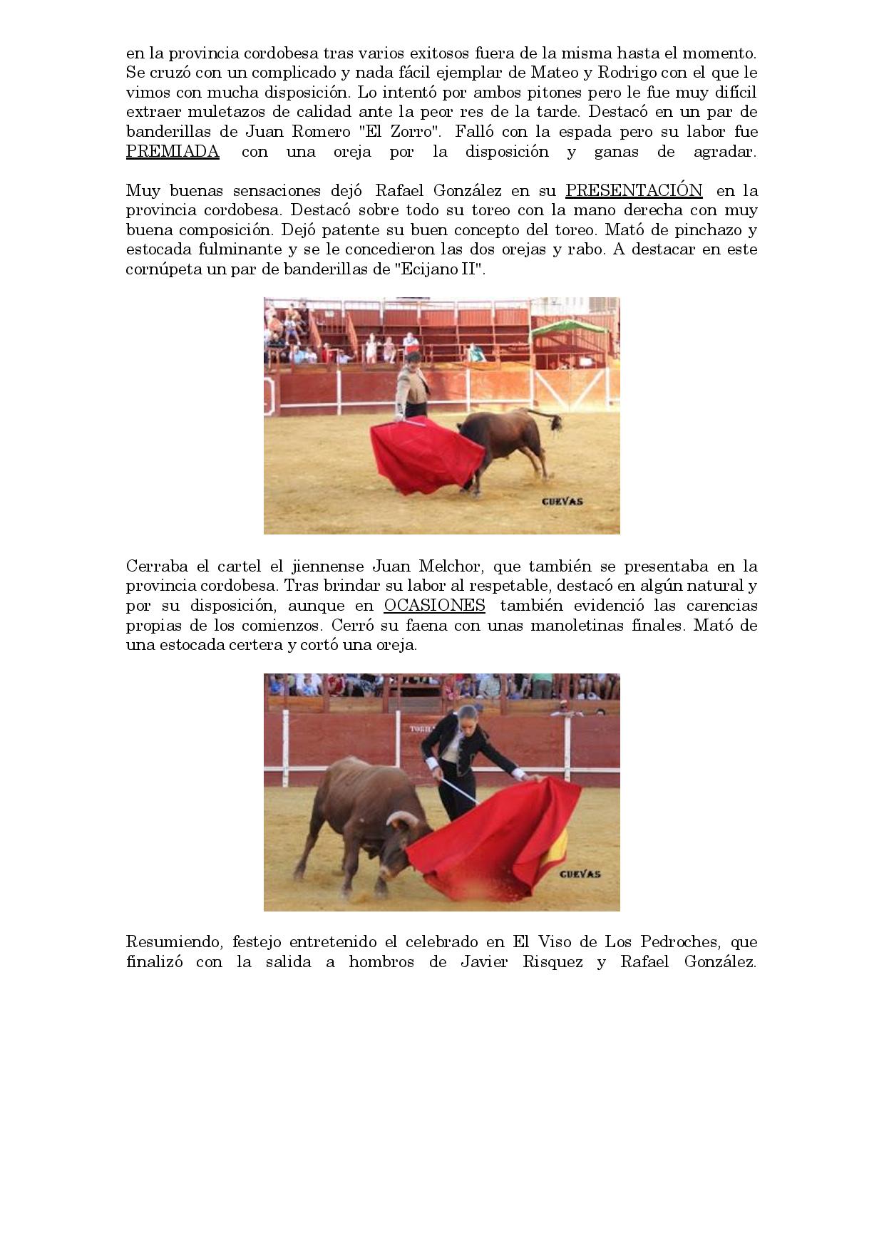 Javier Risquez y Rafael González salen a hombros en El Viso