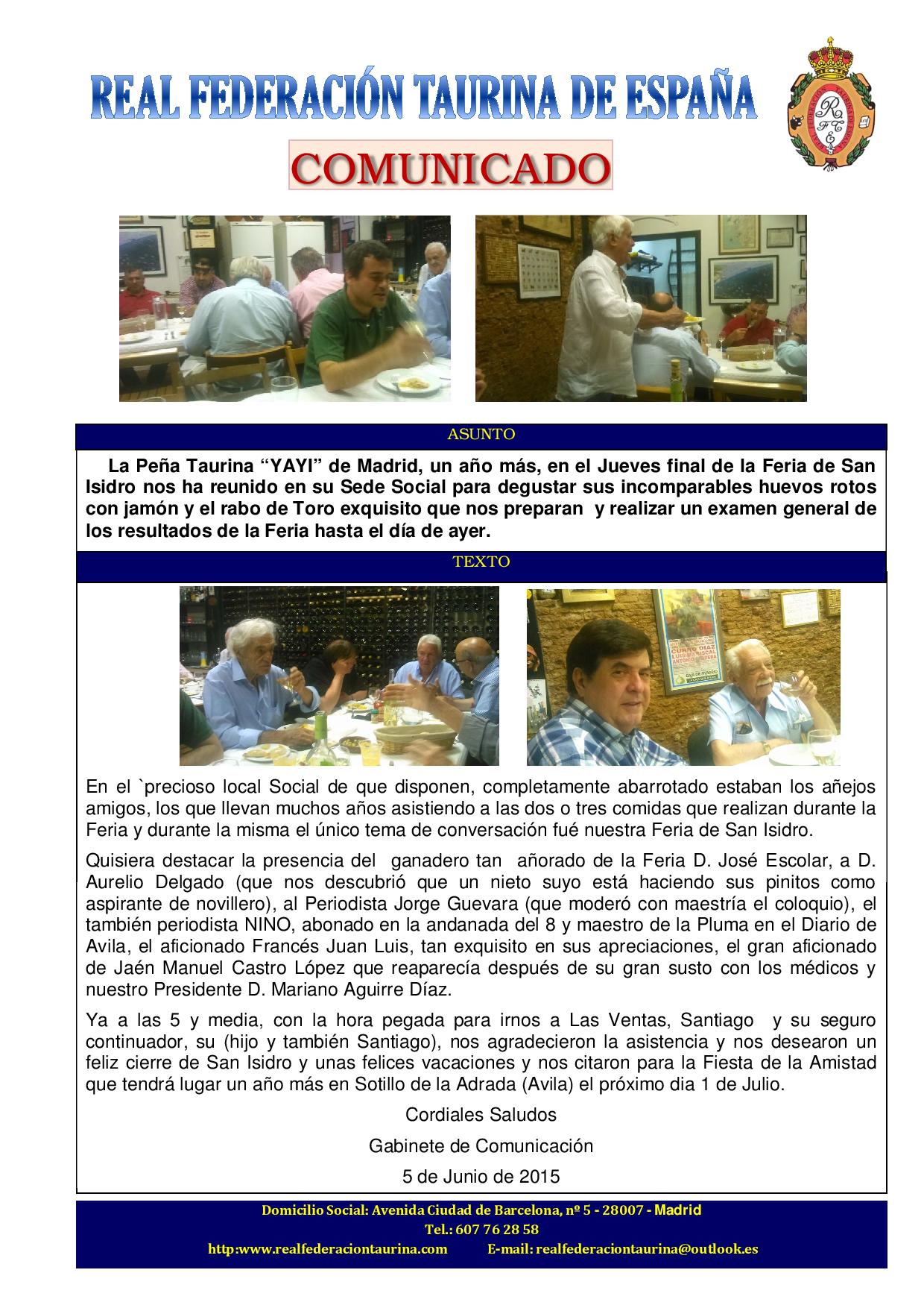 Jornada en la Peña Taurina `YAYI´ de Madrid