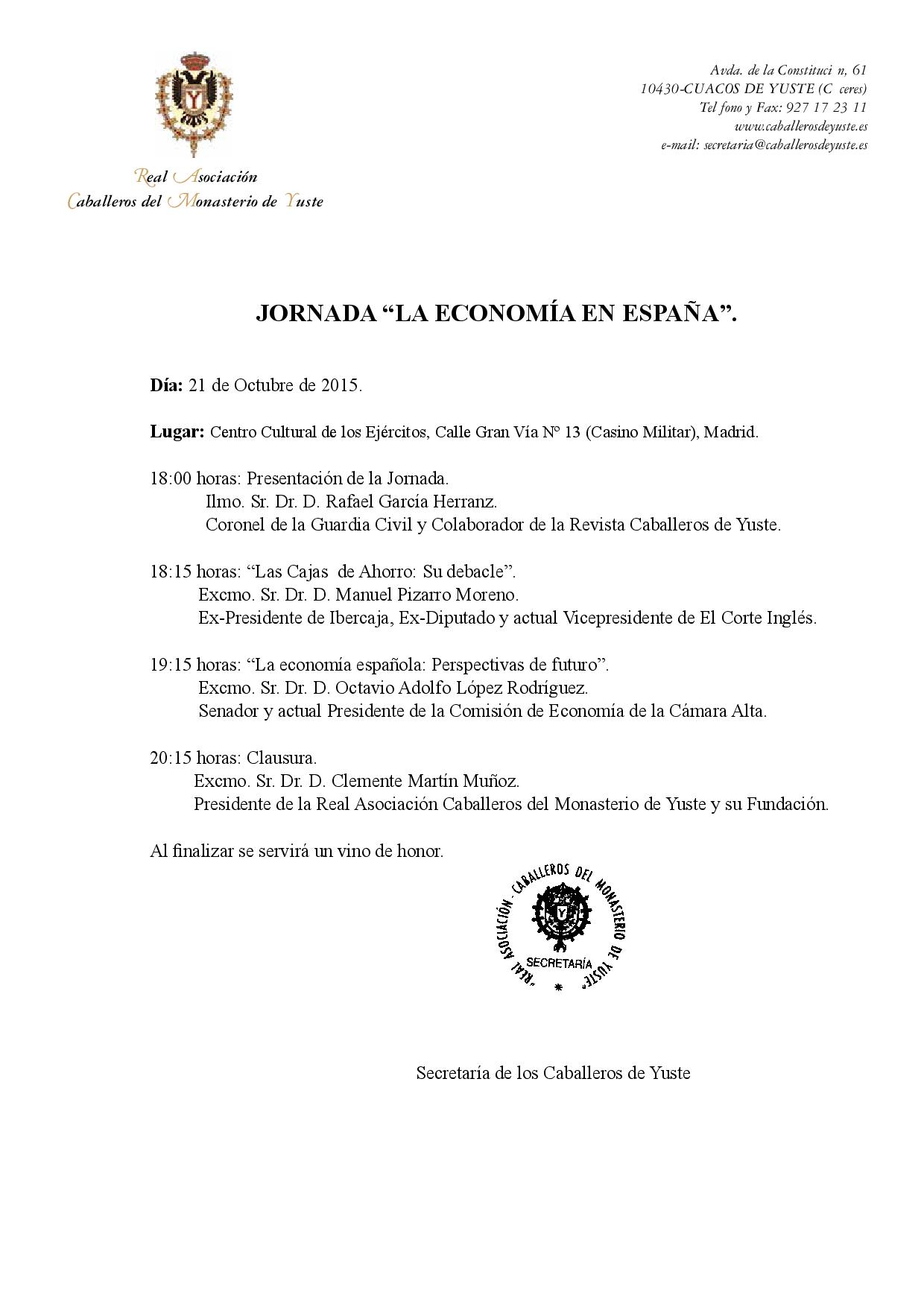 Jornada `La Economía en España´en la Real Asociación Caballeros del Monasterio de Yuste
