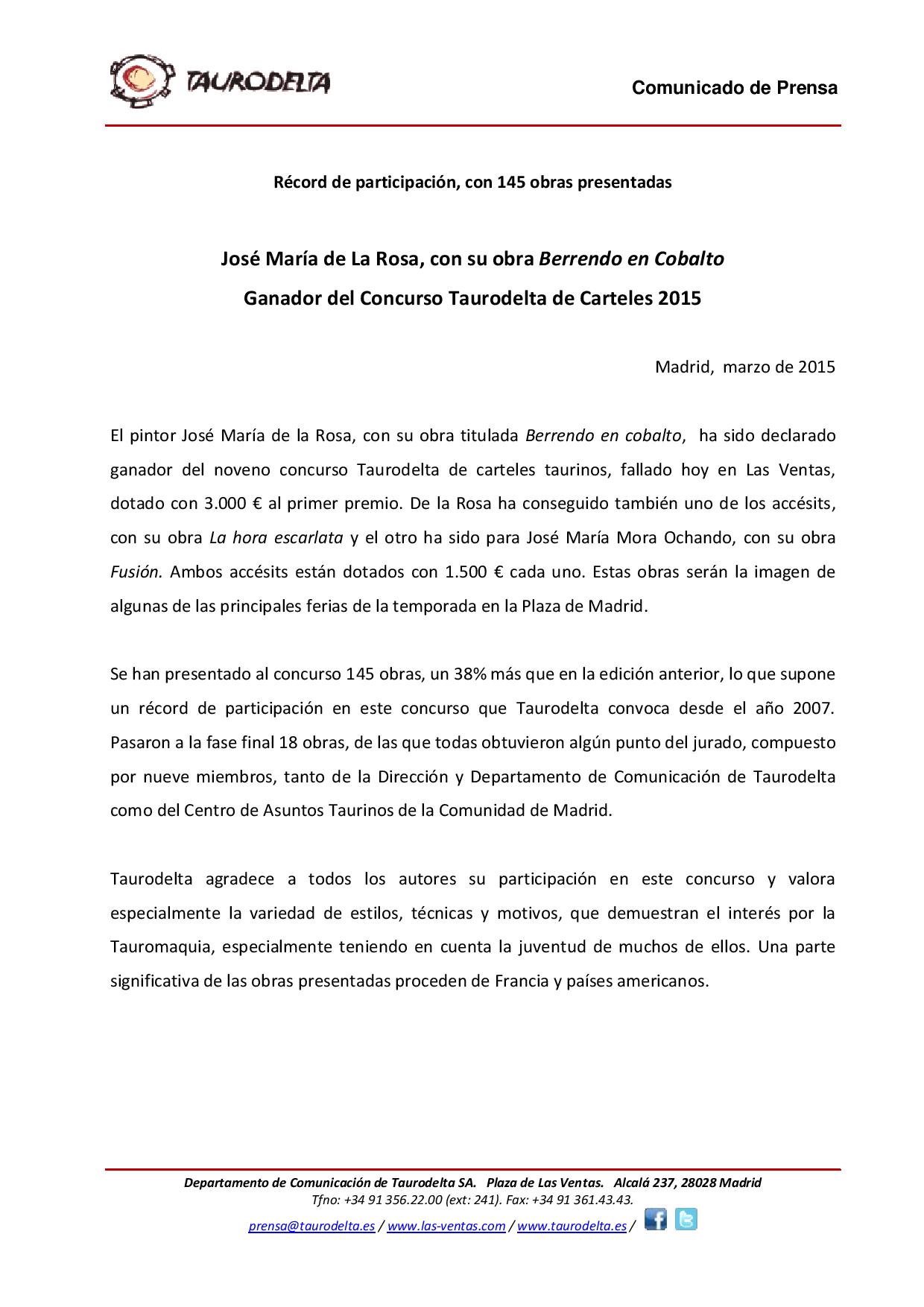 José María de la Rosa, Berrendo en cobalto, ganadora