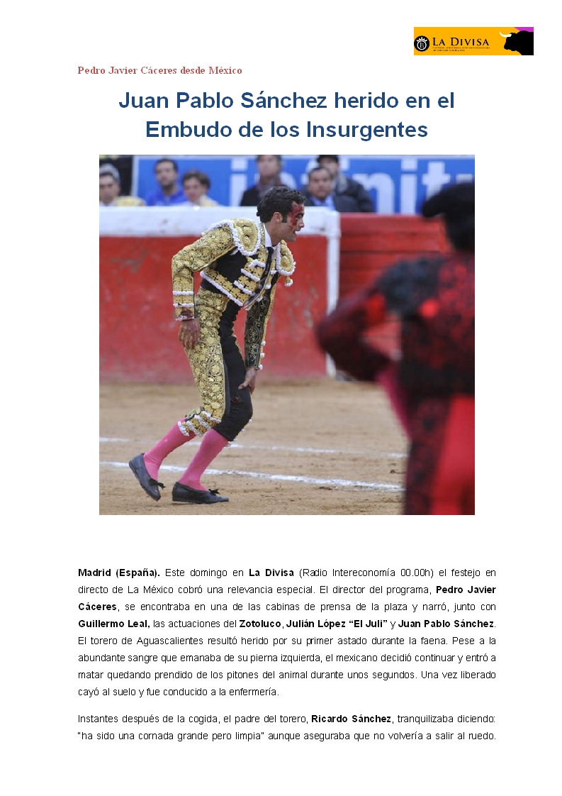 Juan Pablo Sánchez herido en el Embudo de los Insurgentes