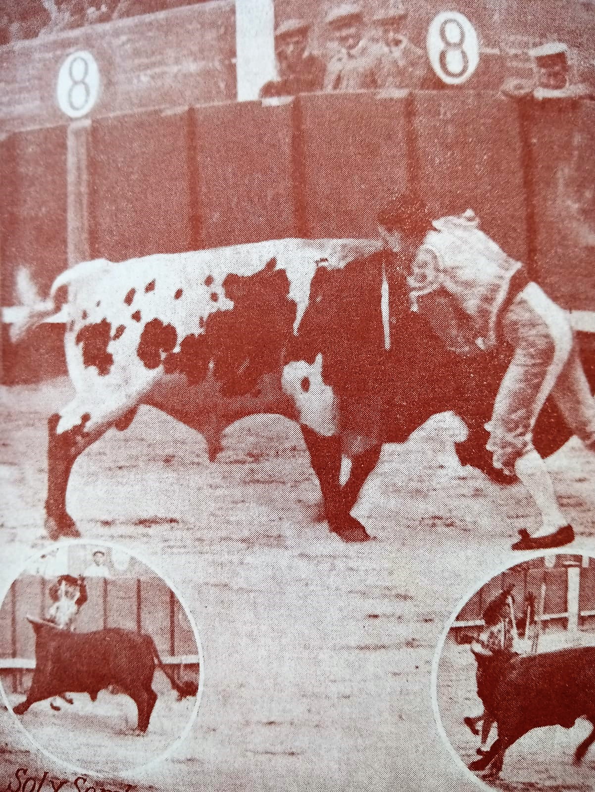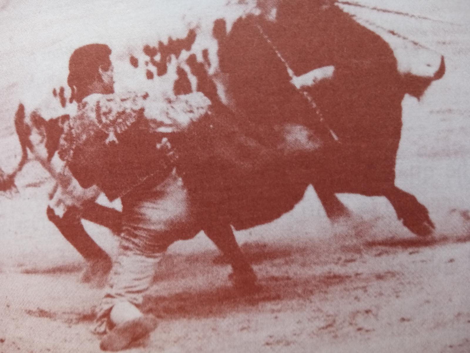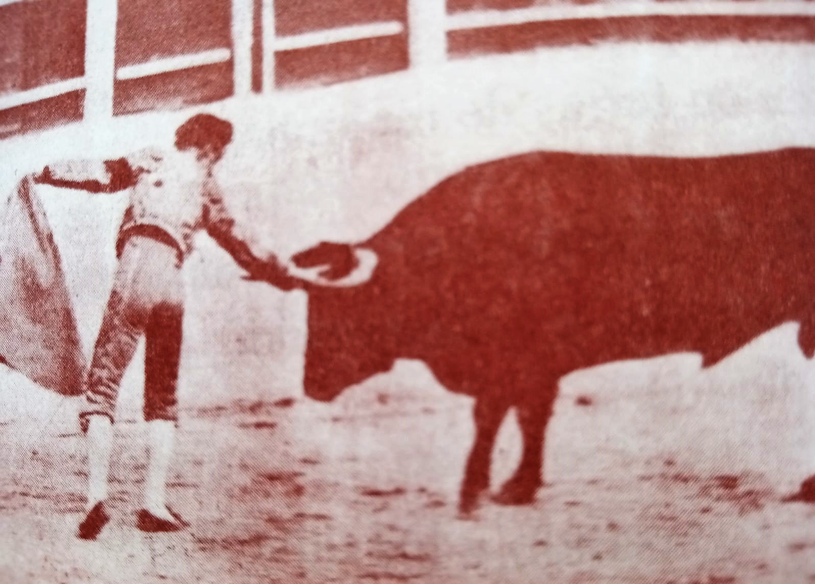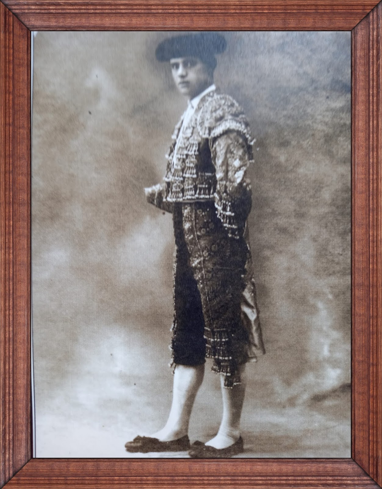 Por primera vez pisa un ruedo figurando en los carteles con ese nombre. Viste alamares dorados sobre fondo de sedas. Oye los clarines, la banda municipal interpreta un pasacalles. Se palpa la impaciencia del público…. Pero, no pudo ser. A esperar otra oportunidad.