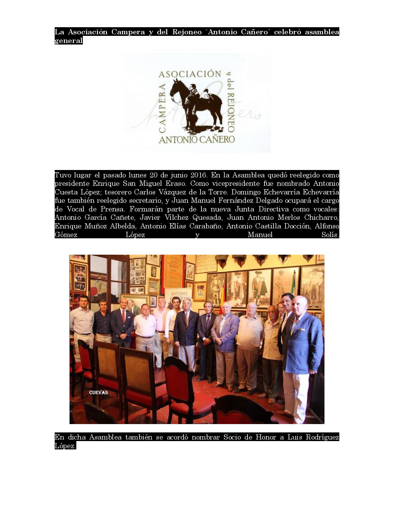 La Asociación Campera y del Rejoneo `Antonio Cañero´ celebró su Asamblea General