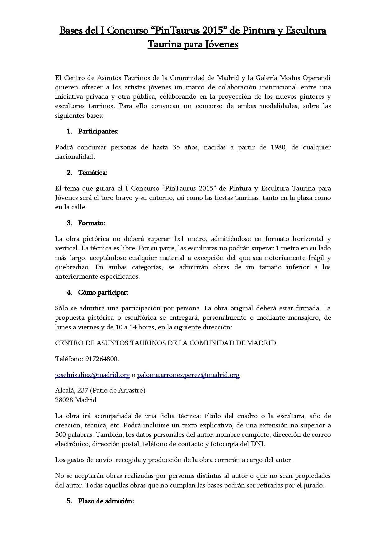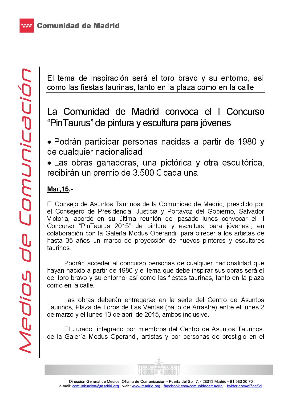 La Comunidad de Madrid convoca el I Concurso `PinTaurus´ de pintura y escultura para jóvenes