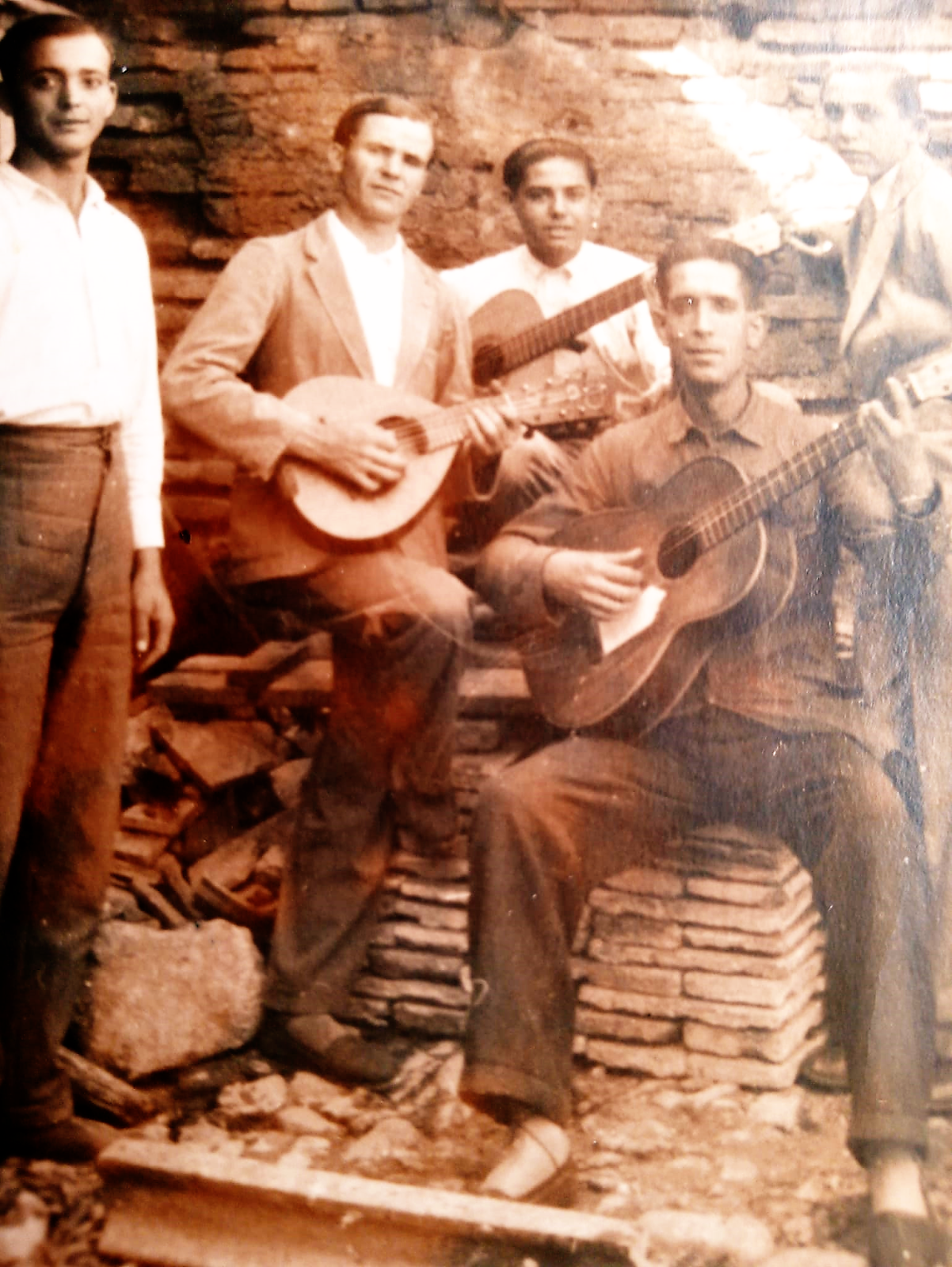 Varios componentes de «la Rondalla González». Entre ellos Juanito (Bandurria) y El Compadre, (Guitarra).