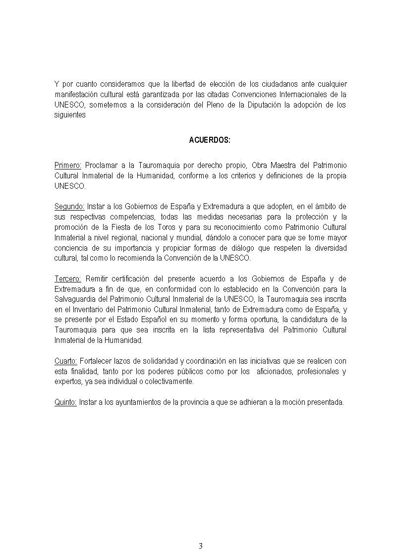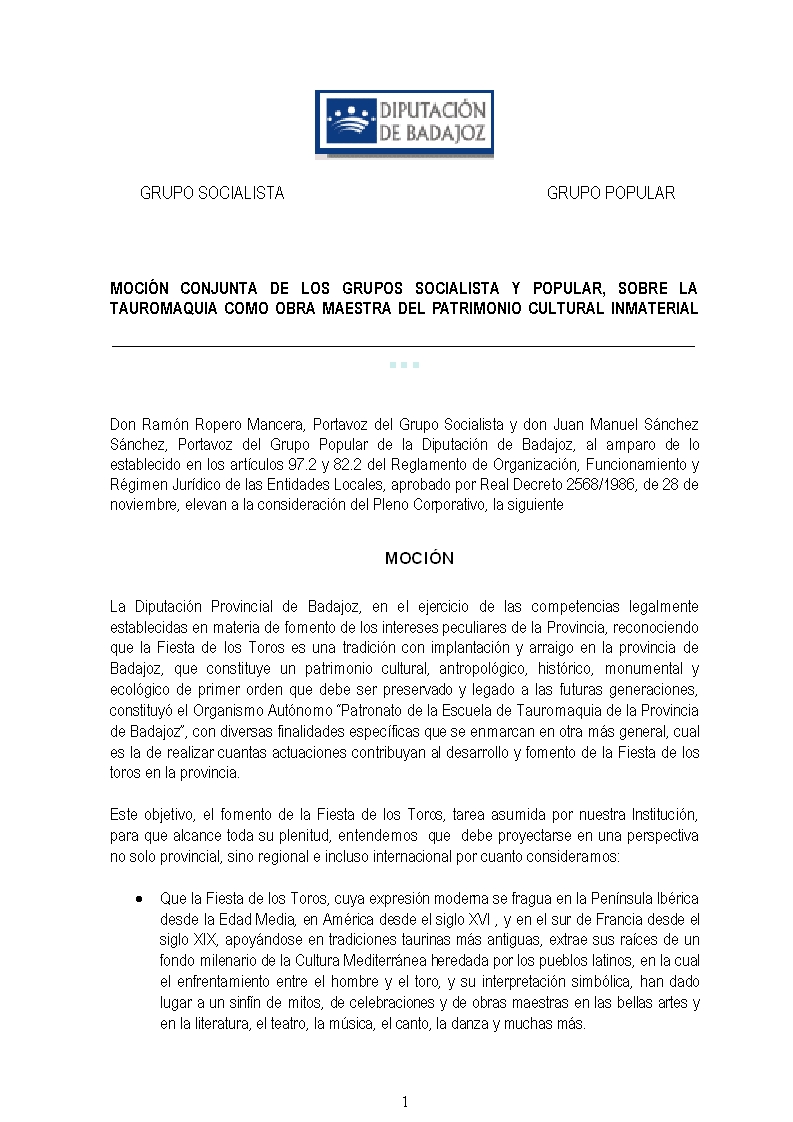 La Diputación de Badajoz aprueba una moción que proclama la Tauromaquia como Obra maestra del patrimonio cultural inmaterial