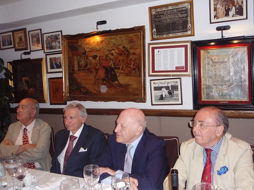 Con el salón lleno de “cabales” y muchos aficionados y personalidades que se unieron al acto y, después de una excelente poesía que le dedicó don Tomás García-Aranda, tomaron la palabra el doctor Vaca Vaticón y don Felipe Díaz Murillo (Escalera del Éxito 112) que, además de demostrarle su amistad, dejaron constancia de algunos sucedidos y anécdotas protagonizadas por el homenajeado. También estuvieron presentes el gran escultor don Santiago de Santiago (Escalera del Éxito 92), don Salvador Sánchez Marruedo (Escalera del Éxito 200), el documentalista don Fernando García Bravo (Escalera del Éxito 202) y el editor de la Agenda Taurina don Vidal Pérez Herrero (Escalera del Éxito 96) , entre otros.