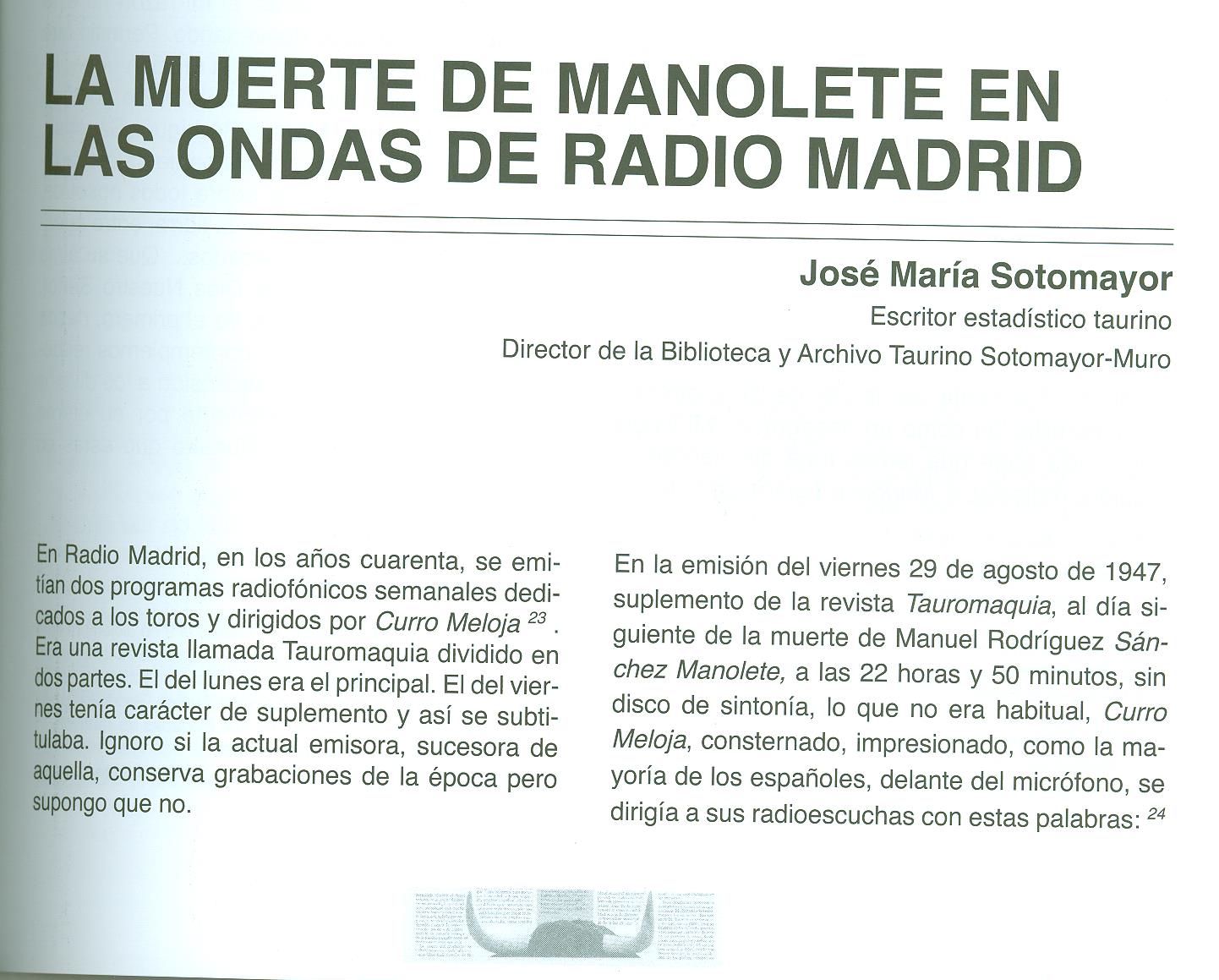La muerte de `Manolete´en las ondas de radio de Madrid