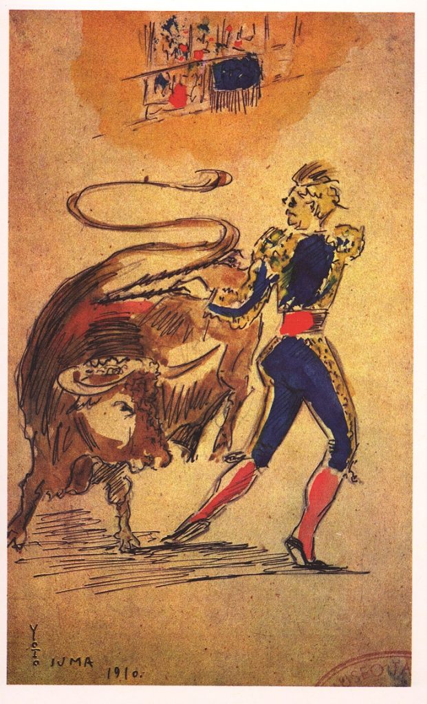 BANDERILLAS AL VIOLIN.- Con los dos palos reunidos en una mano, el torero va hacia el toro en un sesgo, por el lado contrario a la mano en que porta las banderillas.