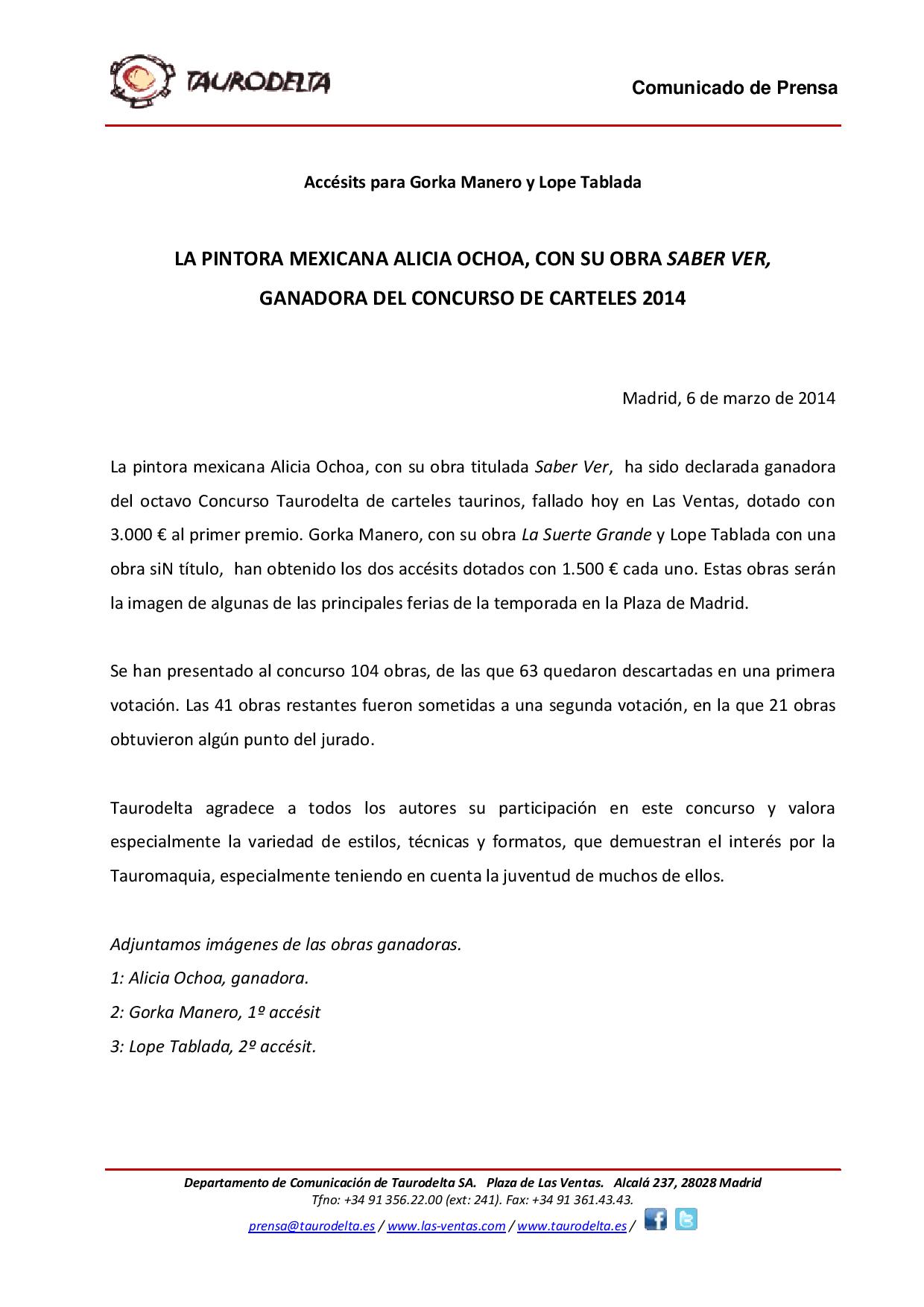 La pintora mexicana Alicia Ochoa ganadora del Concurso de Carteles 2014