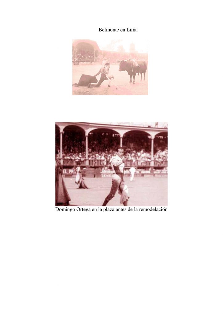 La afición taurina de Lima data desde los primeros días de la conquista española, ya que durante el siglo XVIII, tres plazas de toros hay en ciudad, y se deja ya la plaza Mayor para otros menesteres, Ciudad de los Reyes llama Francisco Pizarro a la que fundo a la vera del Océano Pacifico el 18 de enero de 1535, de quien dice Ricardo Palma en sus Tradiciones Peruanas que alanceo un toro el lunes 29 de marzo de 1540 en la Plaza Mayor, primer festejo taurino registrado en las nuevas tierras conquistadas.