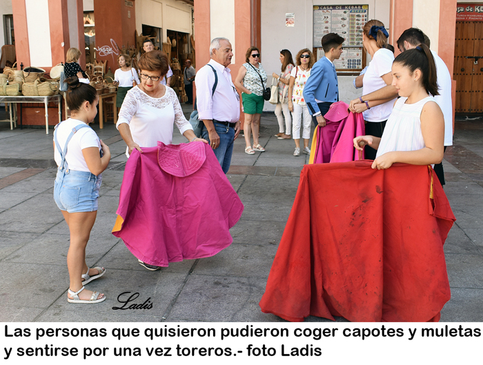 Y por eso, en esta mañana primaveral del sábado día 13 de Octubre, un puñado de chavales, con los profesores Juan Antonio García «El Califa» y Antonio Cañero a la cabeza, inundaron, con el colorido de sus capotes y muletas, el piso granítico de la histórica plaza.