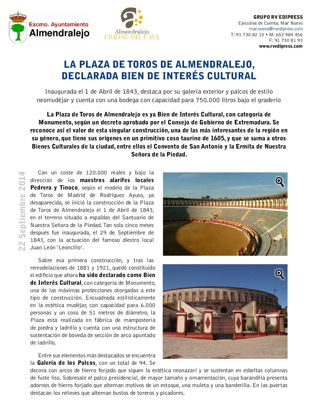 La Plaza de Toros de Almendralejo declarada Bien de Interés Cultural