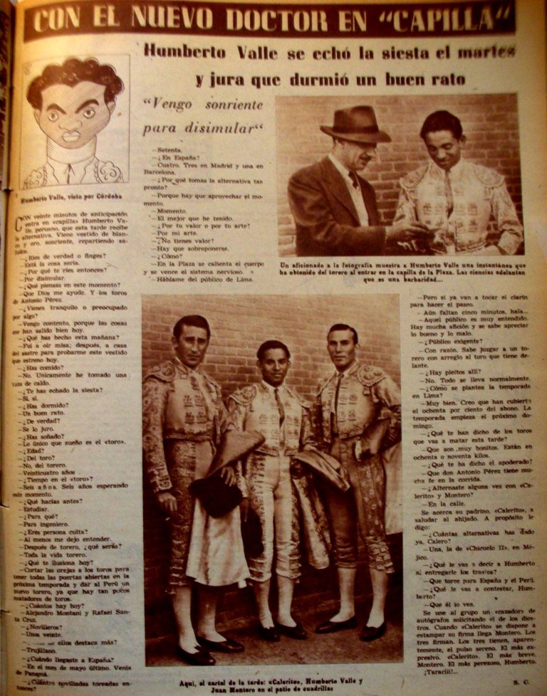 El primer diestro no español que recibió la alternativa en Las Ventas el 12 de octubre de 1954 fue el peruano Humberto Valle, doctorado por Calerito en presencia de Juan Montero, con toros de Antonio Pérez y uno, el 6° de la Viuda de Molero. El toro de la ceremonia se llamó «Cuajadito» número 14, negro.