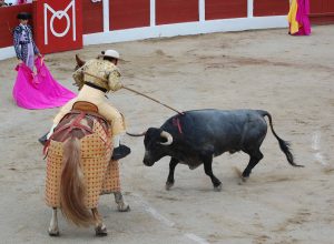 Dicen los picadores que es imposible picar en el morrillo porque en toro se coloca debajo del peto y “físicamente” no hay forma de poner la puya ahí. Creo que tienen razón: hoy es difícil lograrlo. A ello no ayudan las domas actuales de los caballos, la preparación física de muchos de los picadores y el desconocimiento de la anatomía de los toros. Ya no está en YouTube, pero hubo un video de los entrenamientos en la cuadra de Alain Bonijol, por el que podíamos ver cómo seis hombres sujetaban una colchoneta apoyada en la grupa izquierda del caballo mientras con un tractor pequeño atacaba el flanco derecho simulando el encuentro de un toro y el peto. La doma del caballo era para absorber el choque, para acostumbrarse a él. Actualmente aparece un video en el que la doma es mucha más bucólica y bella, en la que el caballo obedece al bocado de forma airosa, lo que sin duda es algo muy positivo que hace este picador y gran aficionado francés que está logrando un caballo torero para la cita y llegada, pero que posibilita el topetazo con el peto con caballos adiestrados para ello.