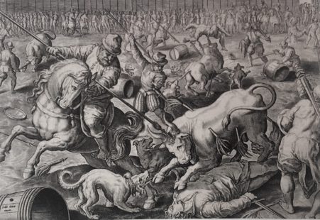 “Venationes ferarum…”, de Philippus Gallaeus, 1578. (Lanzas, rejones, rejoncillos, espadas, banderillas y muletas