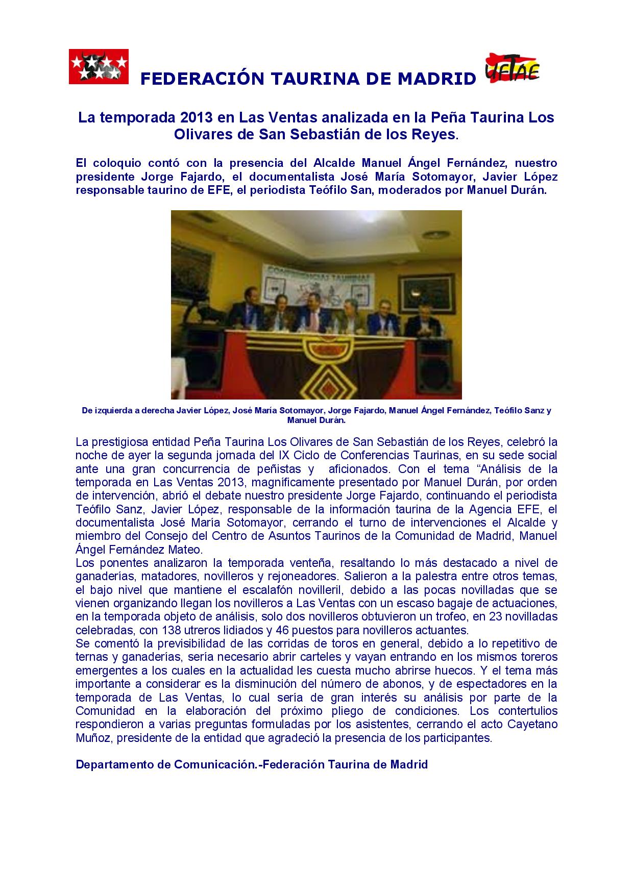 La temporada 2013 en Las Ventas analizada en la Peña Taurina Los Olivares de San Sebastián de los Reyes
