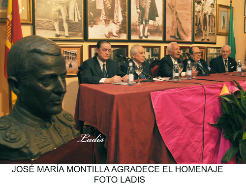 En sus palabras de agradecimiento Montilla destacó la gran ayuda que recibió siempre de la familia taurina cordobesa y recordó con cariño que un hombre de la categoría del Pipo se fijara en el y le dirigiera sus primeros pasos hasta que encomendó a su hijo esta misión. Dijo también estar muy satisfecho de haber podido torear con todos los grandes toreros de su época; “El Cordobés”, “El Pireo”, Ordóñez, Camino, El Viti, Aparicio, Ostos, etc.